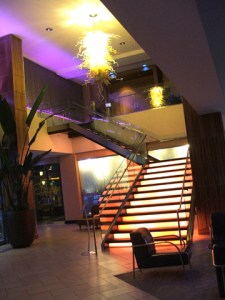 Glowing neon stairs and what looked like a Chihuly light fixture.