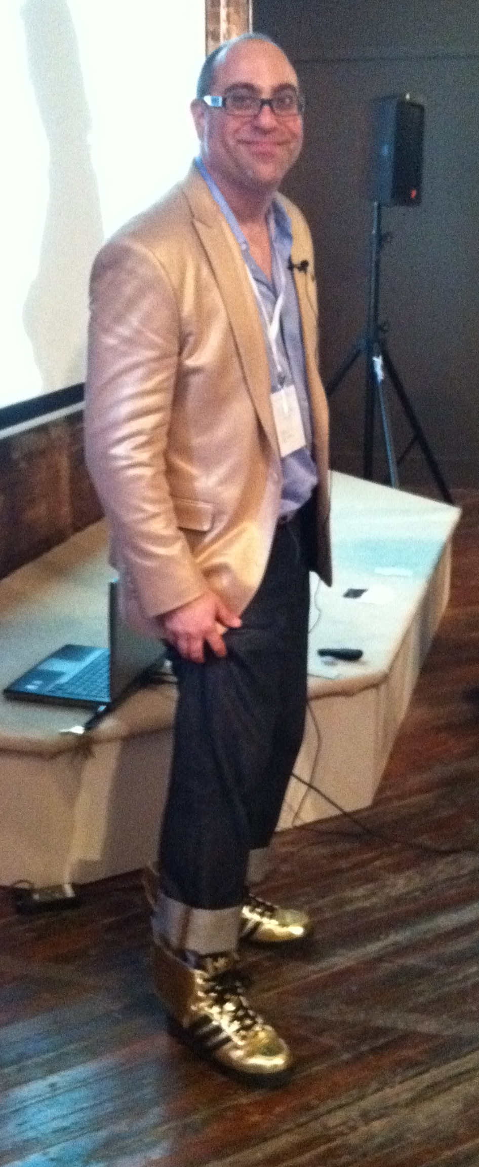 Bill Indursky, Co-founder of  VandM, one of the largest vintage and modern design websites, shared his expertise on design trend forecasting. He was sporting an eye grabbing pair of gold winged ‘statement’ shoes.