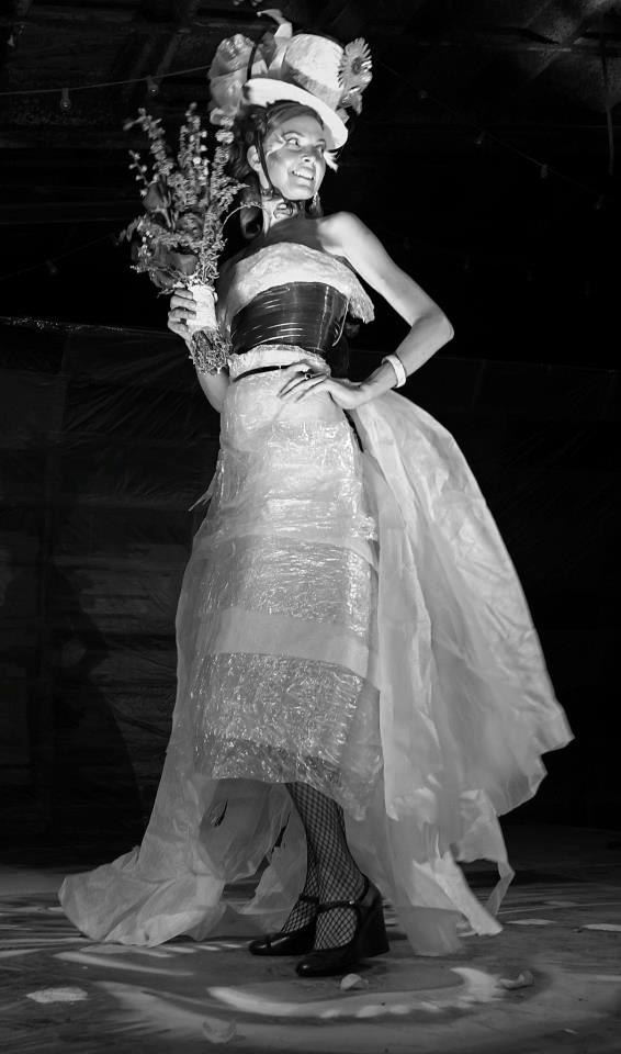 Her hat was made from a planter. Would you wear a trash recycled wedding dress? I think you might. I think its fab.