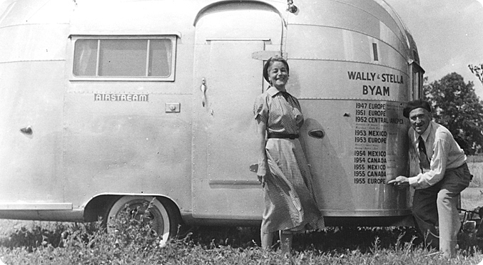Airstream trailers came on the road in 1932. They were built in America and built to last. Wally Byam was the visionary and designer. After erecting a tent on a Model T Ford chassis, he then built a tear-drop-shaped permanent shelter on the same platform with an added ice chest and kerosene stove. This led to the Aluminum Clad Airstream trailer. He was a man who wore Wellies, a blue beret that he got in France, and a plaid shirt. Wally was rockin the fashion scene.