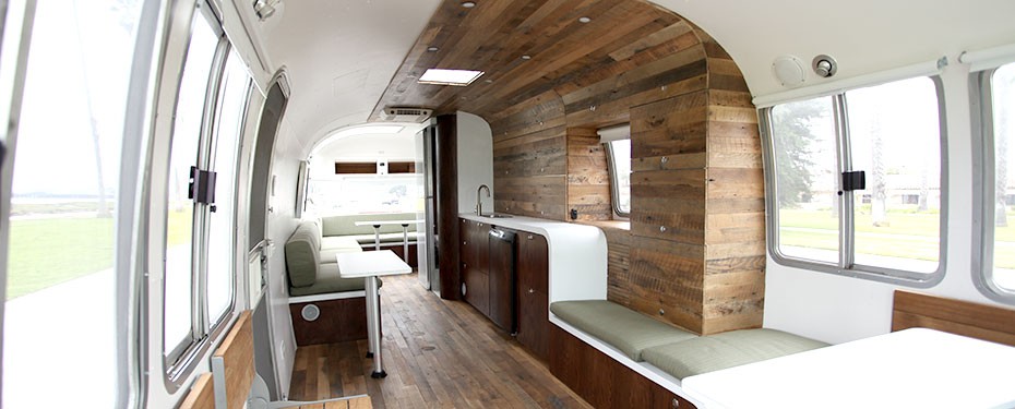 The Hof Arc team also redesigned a 1985 Airstream for client Delivering Happiness. Love the wood walls!