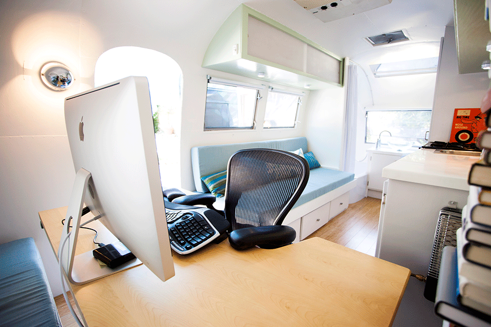 This Mom cave designed for a Malibu Mom for her office and guest house is absolutely fun. I need a Airstream Mom Cave!